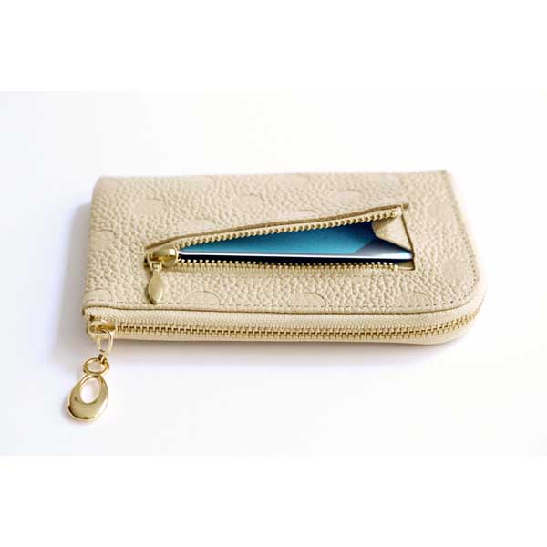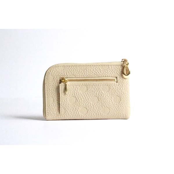 姫路レザー牛革L字ファスナーミニ財布 アイボリー